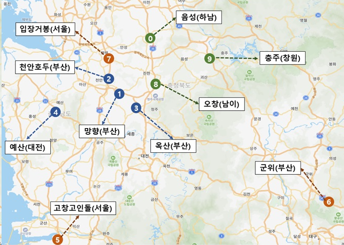 망향(부산), 천안호두(부산), 옥산(부산), 에산(대전), 고창(서울), 군위(부산), 입장거봉포도(서울), 오창(남이), 충주(창원), 음성(하남) 총 10곳입니다. 휴게소별 무료 충전 서비스의 제공 일자는 카카오티, 티맵 등 어플에서 확인할 수 있습니다.