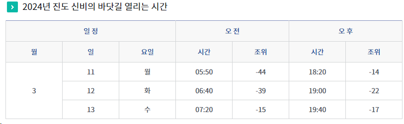 2024년 3월 바닷길이 열리는 신비로운 광경을 즐기기 위한 축제가 열립니다.