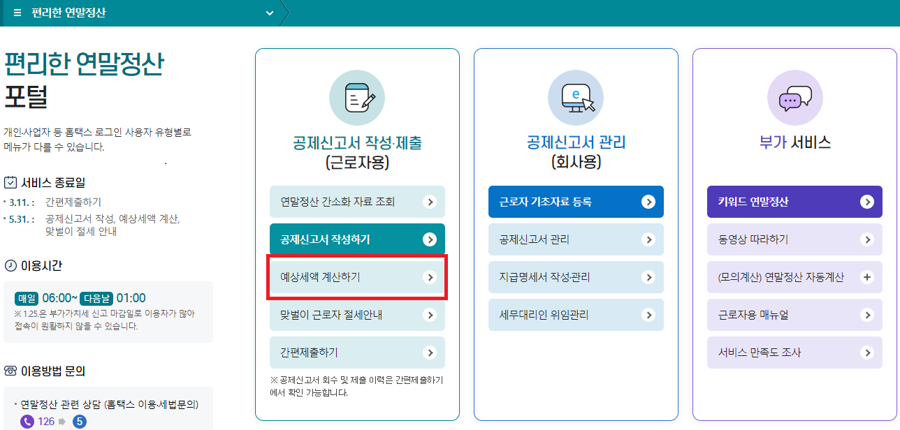 연말정산 환급금 조회 1) 예상세액 계산하기
