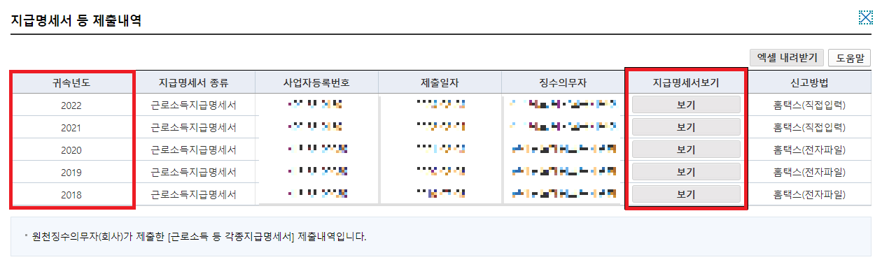 ② [연말정산 및 지급명세서] - [지급명세서 등 제출내역 클릭] - [지급명세서보기] 클릭
