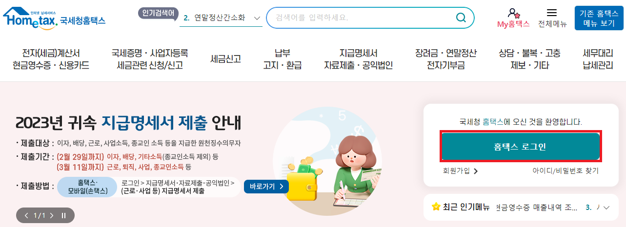 ① 국세청 홈텍스 홈페이지 접속 후 로그인