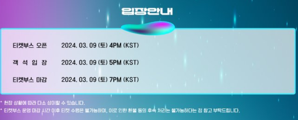 - 티켓오픈: 2024년 2월 16일 (금) 오후 8시
