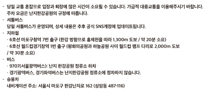 - 주의사항: 예매자 아이디로 발급된 모바일 티켓, 실물 신분증 지참 필수 (모바일 티켓 캡처본 및 사본 절대 불가)