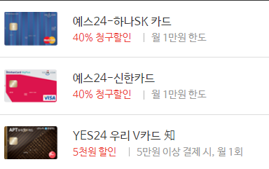 - 예스24 제휴카드 확인하기