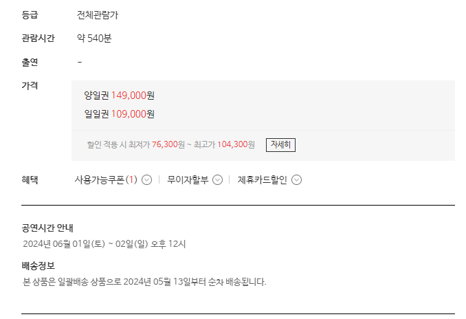 - 예매처: YES24 티켓, 인터파크 티켓, 티켓링크