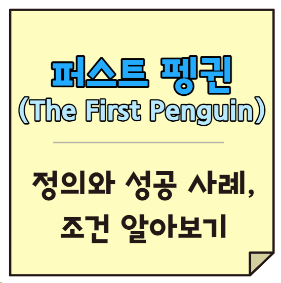 새로운 도전을 두려워하지 않는 사람들을 '퍼스트 펭귄'이라고 부릅니다. 오늘은 퍼스트 펭귄의 정의와 성공 사례 그리고 퍼스트 펭귄이 되기 위한 조건에는 무엇이 있는지 알아보겠습니다.