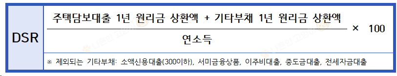 가계부채가 지나치게 늘어나는 것을 예방하고자 정부에서 DSR 40%이하로 규제하고 있습니다.