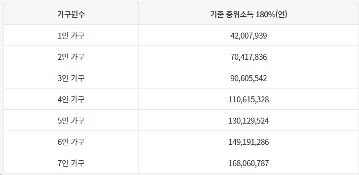 또한 가구소득도 심사해야는데요. 가구원 수에 따라 기준 중위소득 180% 이하에 해당되는 청년은 가입할 수 있습니다.