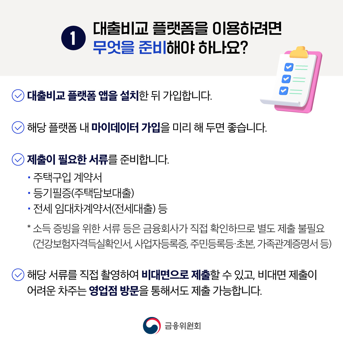Q1) 대환대출 위한 대출비교 플랫폼을 이용하려면 준비물은?
