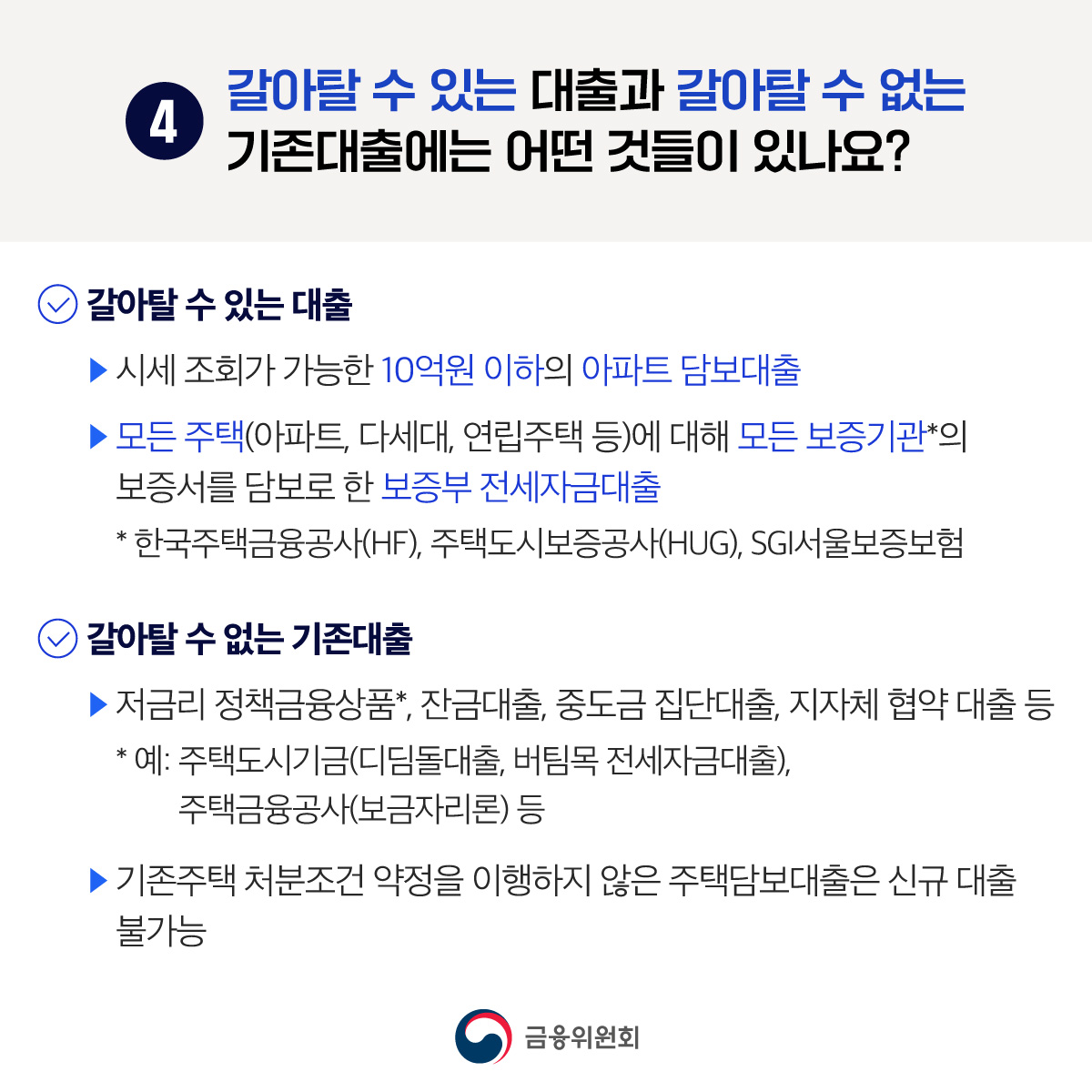 Q4) 갈아탈 수 있는 대출과 갈아탈 수 없는 기존대출은 무엇인가요?