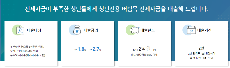 청년버팀목 전세자금 대출의 내용을 간단하게 정리해보겠습니다.