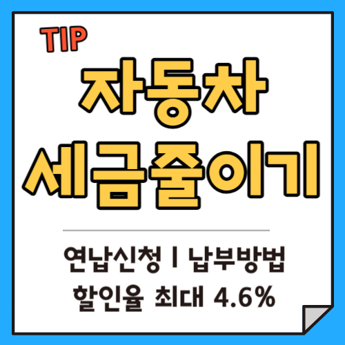 자동차세는 매년 6월, 12월 2번 나눠서 납부하는 세금입니다. 자동차세금을 4.6% 할인받아 납부하는 방법이 있는데요.